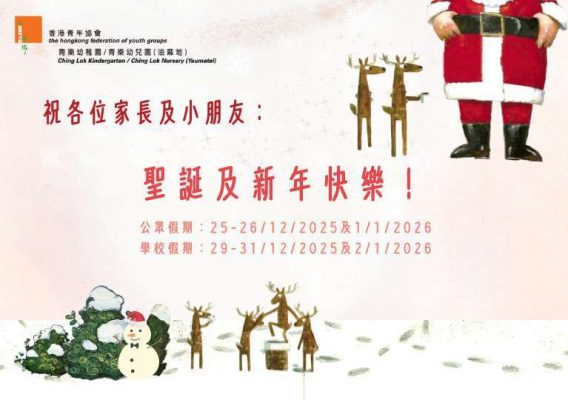 學校假期:29-31/12/2025及2/1/2026